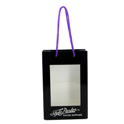 Dicetak Tas Belanja Kertas Hitam Gift Window Packaging Bags With Handles Window |