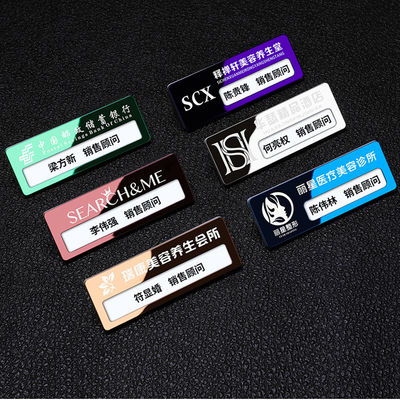 Custom Stainless Steel Nama Badge Dengan Logo Replaceable Masukkan Premium Nama Tag Produsen